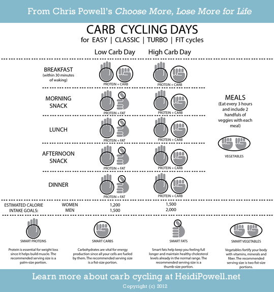 Here’s the most important take-away about carbs: with carbs and carb cycling, it’s not about a magic number of grams of carbs to eat every day. It’s about spreading your carb intake throughout your high-carb days—using portion sizes instead of gram counts—so your body gets the greatest benefits from those healthy carbs you eat. And wouldn’t you much rather measure portions sizes than count grams? I think yes!